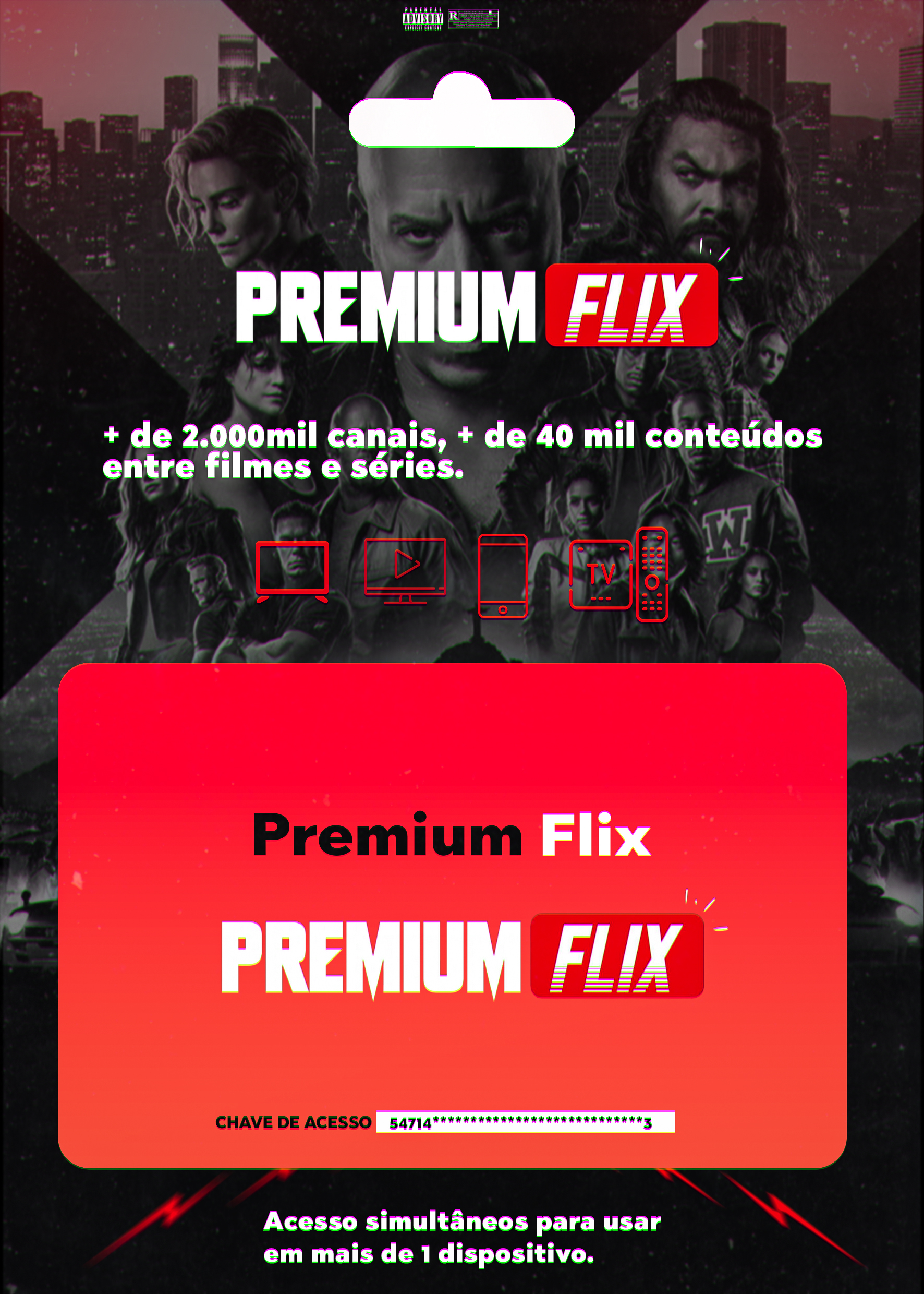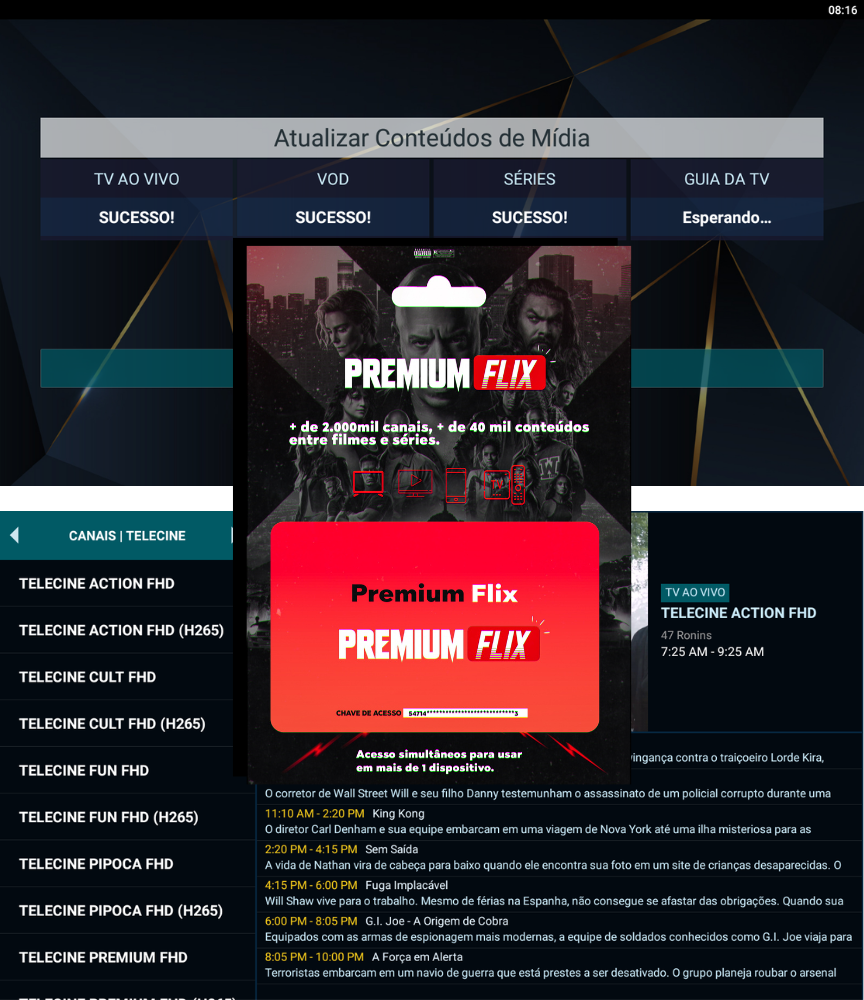 O PREMIUMFLIX vai com o acesso que pega todos os Canais sem mensalidade.