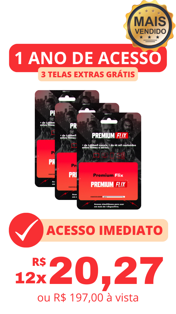 Somos uma empresa de E-commerce, Todos os direitos reservados | Importante: Esta página não tem qualquer vínculo com o Facebook S/A e suas empresas, apenas usamos a plataforma para promover os nossos produtos. Ao sair da plataforma toda responsabilidade sobre produtos vendidos e ofertados é de inteira responsabilidade da nossa empresa, bem como se houver quaisquer eventualidades legais. Declaramos que o Facebook S/A não tem qualquer vínculo de associação em processos civeis ou criminais.Nosso email de suporte é: suporte@premiumflix.com.br Não compre produtos piratas, não vendemos em marketplaces como: Mercado Livre, Shopee, Aliexpress, Facebook, Olx etc.Não damos suporte a produtos comprados nestes canais.